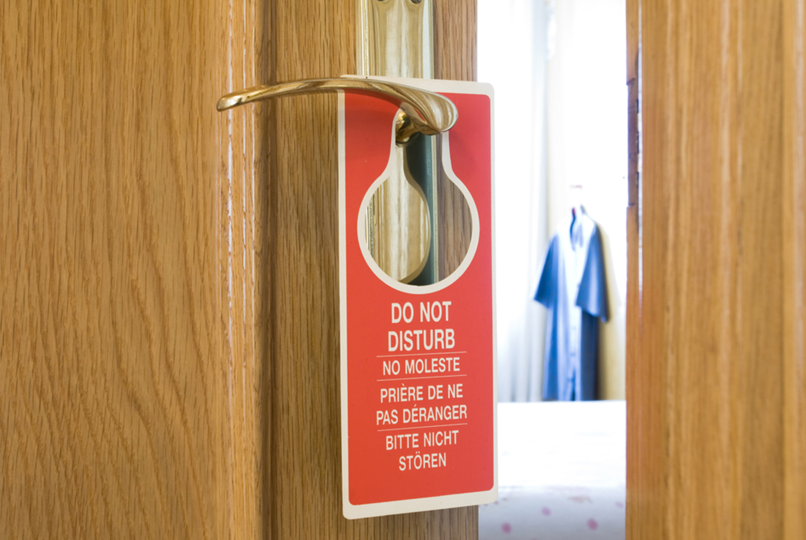Do vậy, nếu không muốn giấc ngủ bị gián đoạn, hoặc thời gian riêng tư đặc biệt với ai đó bị phá vỡ, bạn nên để dấu hiệu “không làm phiền” ngoài cửa phòng.
