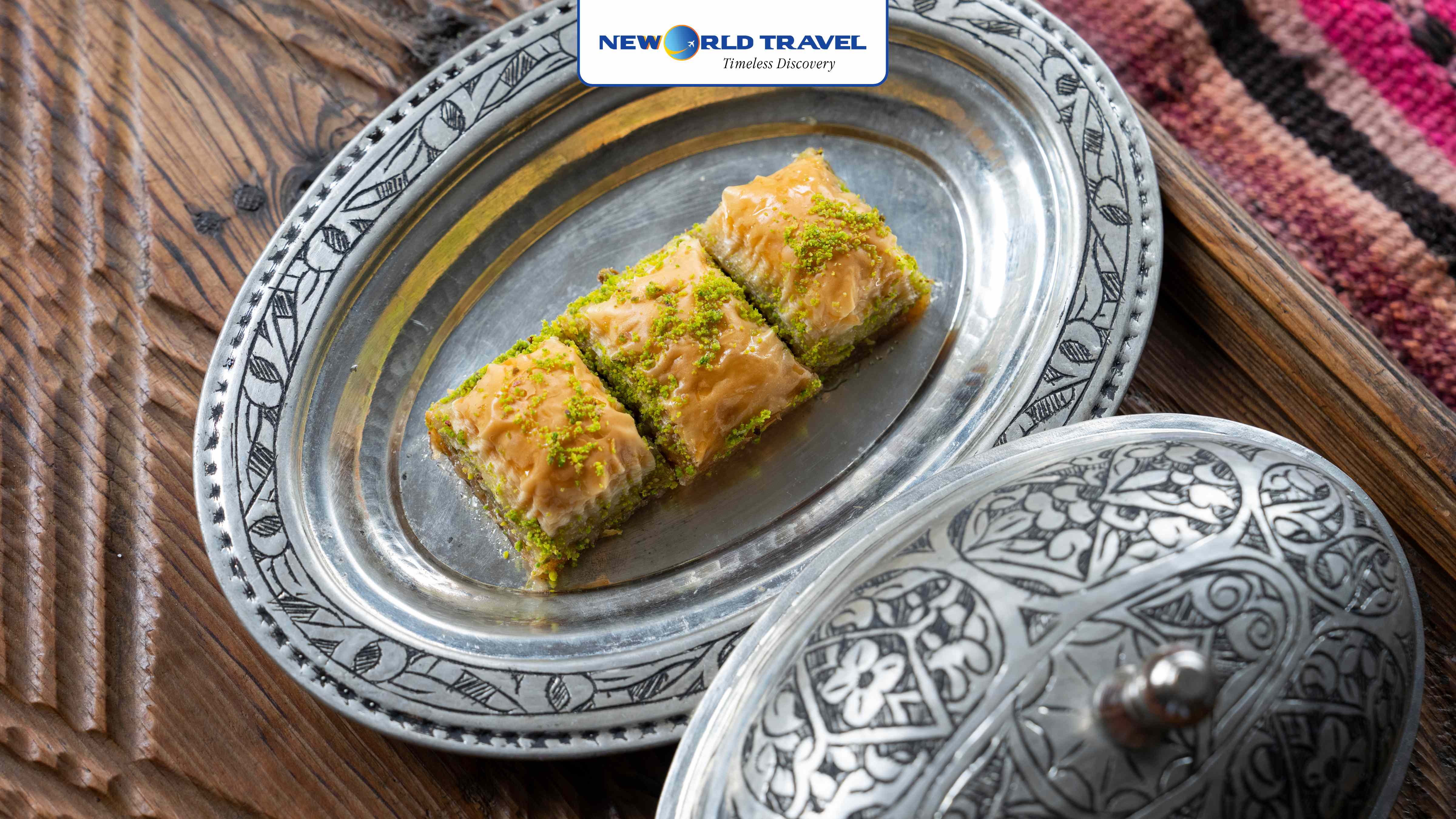 Baklava là món bánh ngọt trứ danh, có nguồn gốc từ văn hóa Thổ du mục và được hoàn thiện trong ẩm thực cung đình Ottoman. Bánh gồm nhiều lớp bột phyllo mỏng xen kẽ hạt rang, phủ siro ngọt, với các biến thể phổ biến như pistachio, óc chó, sô-cô-la hay Sütlü Nuriye. Khi thưởng thức, baklava chinh phục thực khách bởi vị ngọt thanh, béo thơm và lớp vỏ giòn tan đầy cuốn hút.