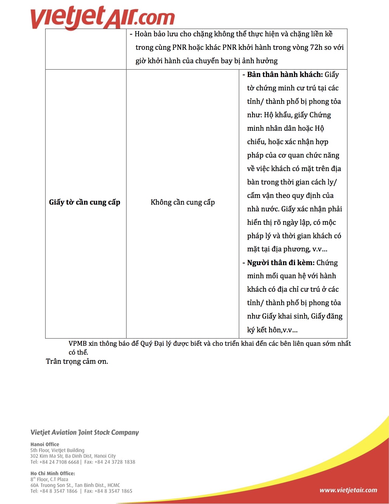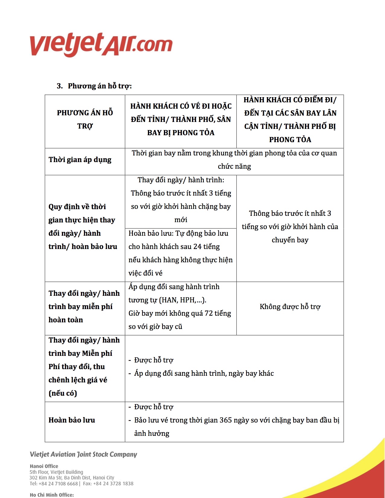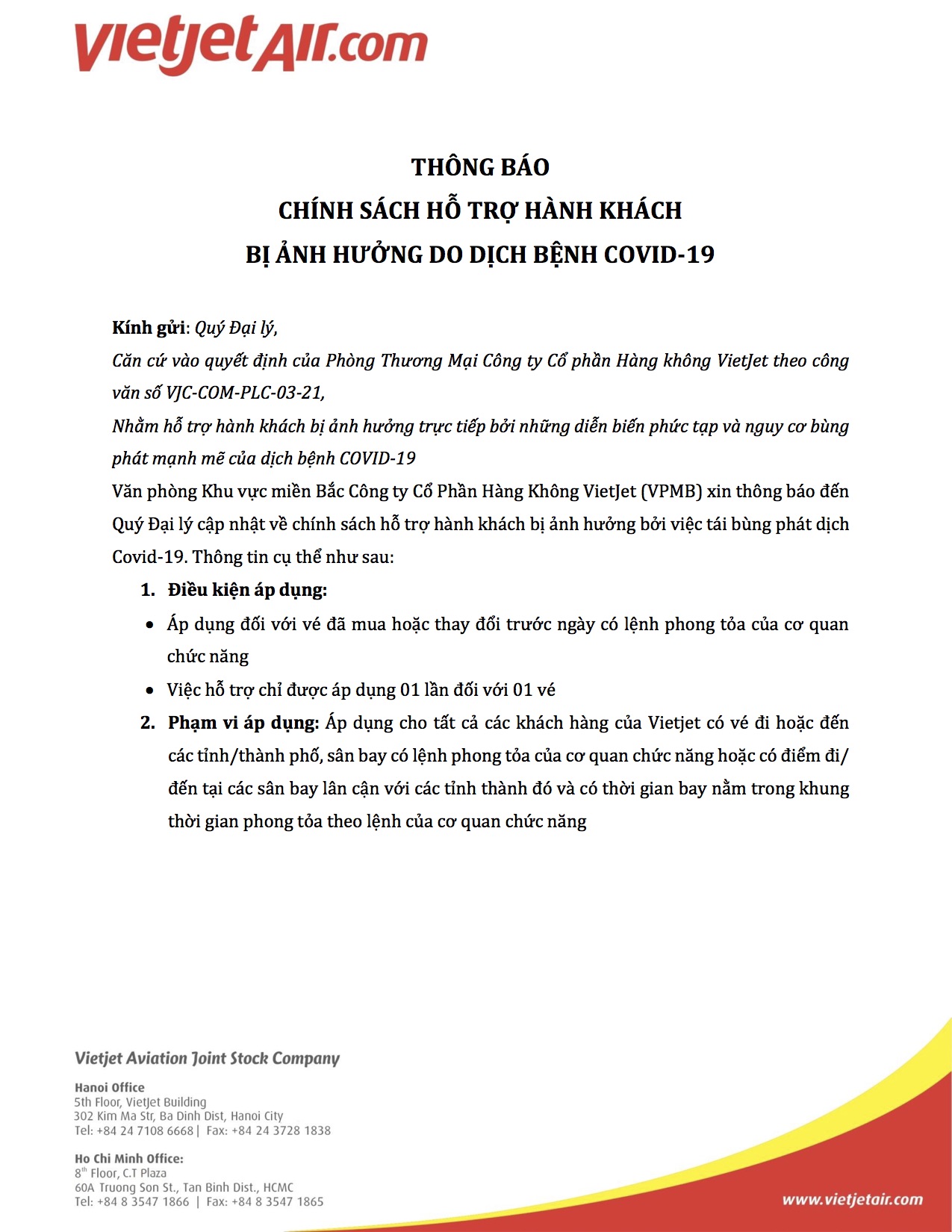 3. Vietjet Air: Thông báo cập nhật chính sách hỗ trợ hành khách bị ảnh hưởng bởi dịch bệnh Covid - 19.