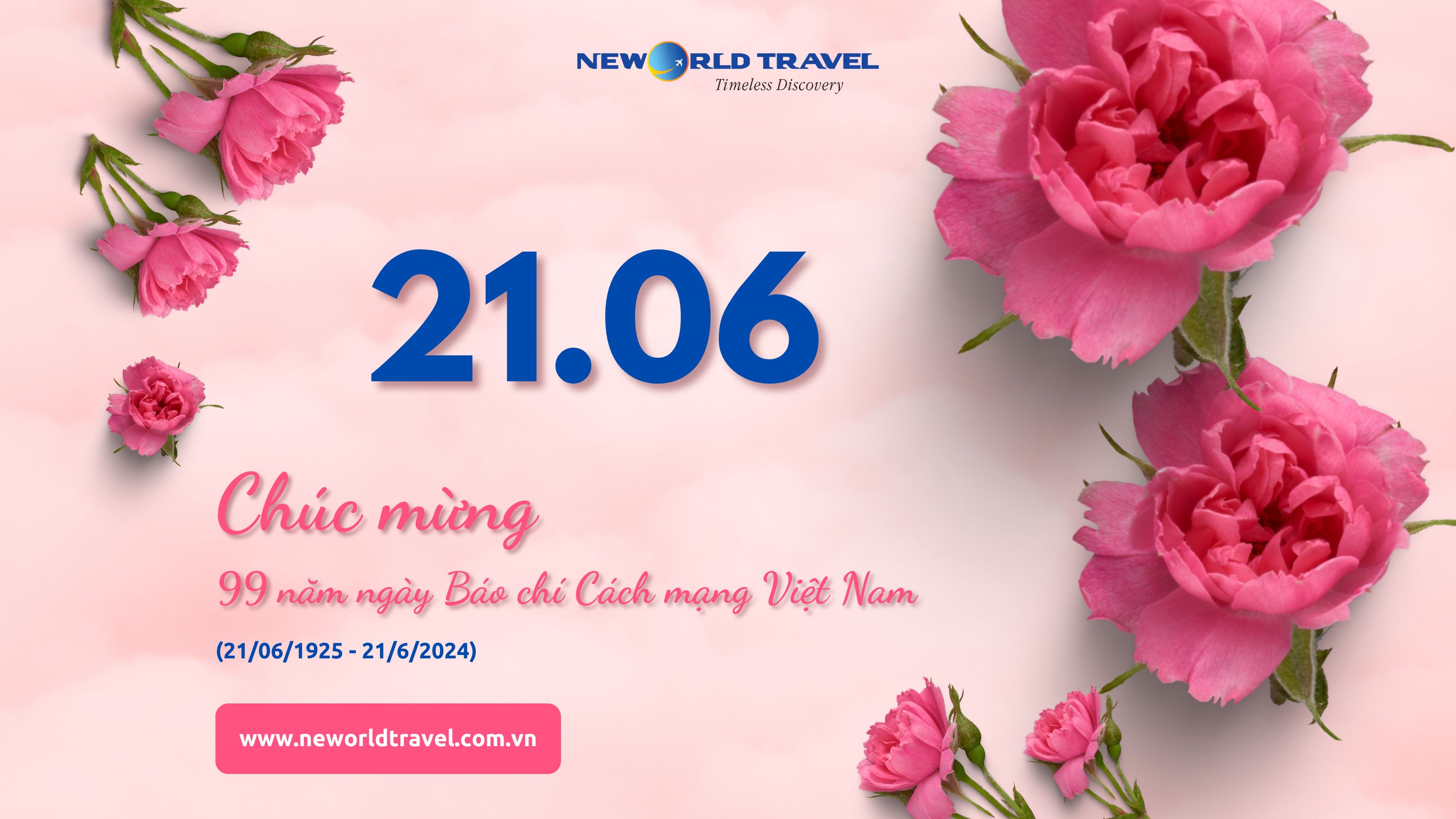 Nhân kỷ niệm 99 năm Ngày Báo chí Cách mạng Việt Nam (21/6/1925 - 21/6/2024), Du lịch Tân Thế Giới - New World Travel xin gửi tới các nhà báo, phóng viên, biên tập viên, những người làm việc trong ngành truyền thông, báo chí lời chúc sức khỏe, hạnh phúc và thành công trong sự nghiệp. Chúc các anh, chị luôn giữ vững ngòi bút và lòng yêu nghề của mình.