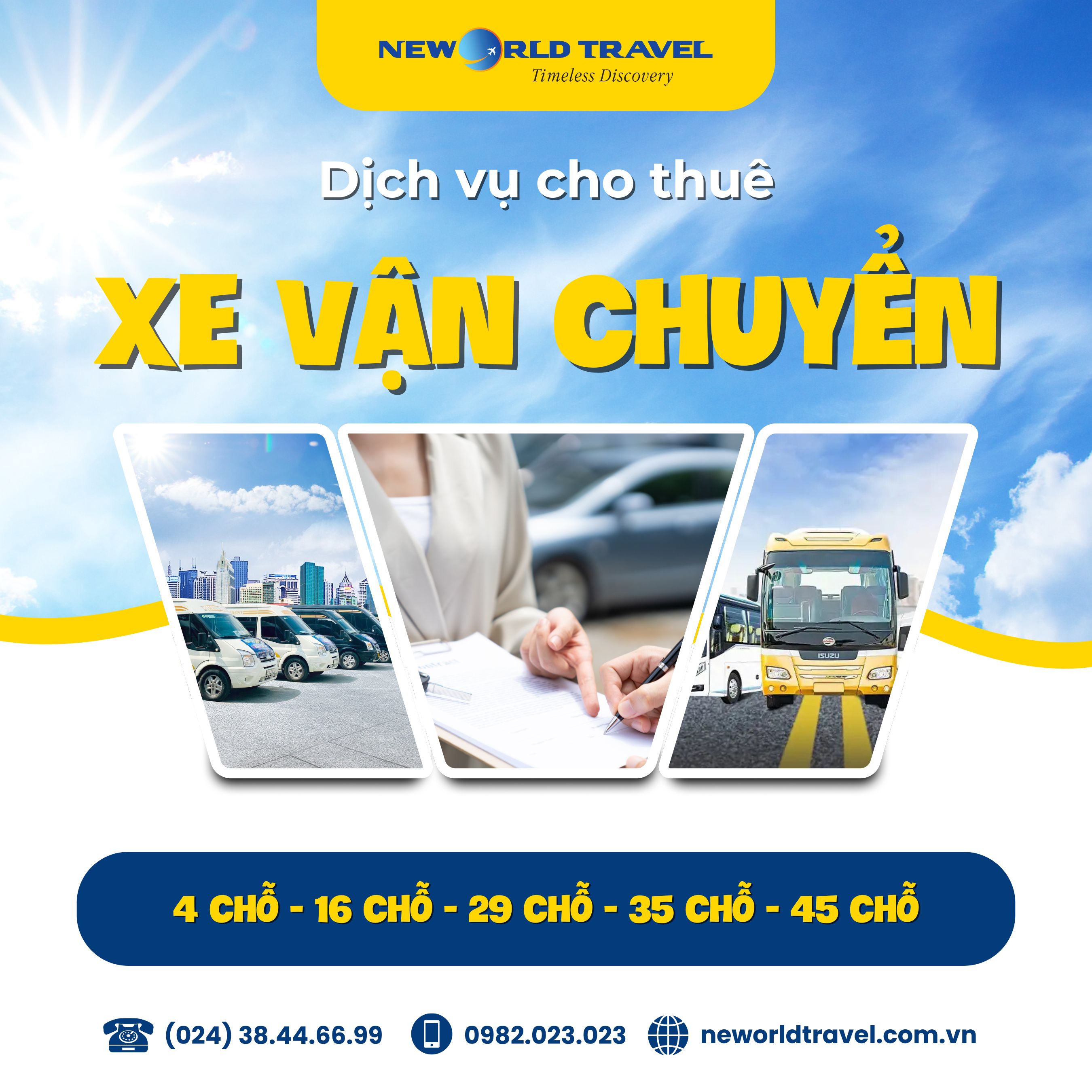 * Dịch vụ cho thuê xe vận chuyển: 4 chỗ - 7 chỗ - 16 chỗ - 29 chỗ - 35 chỗ - 45 chỗ