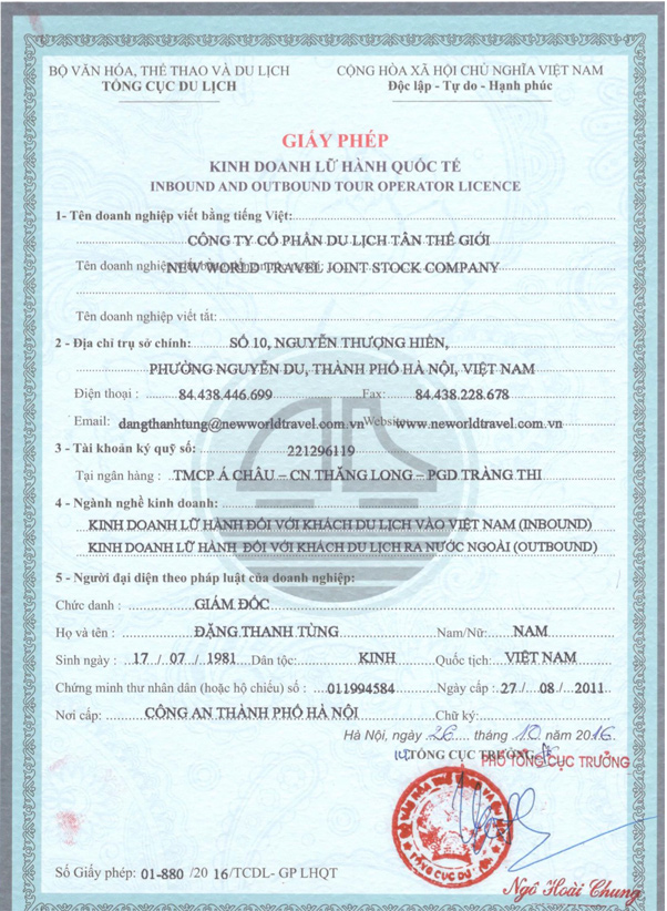 Giấy phép lữ hành Quốc Tế New World Travel