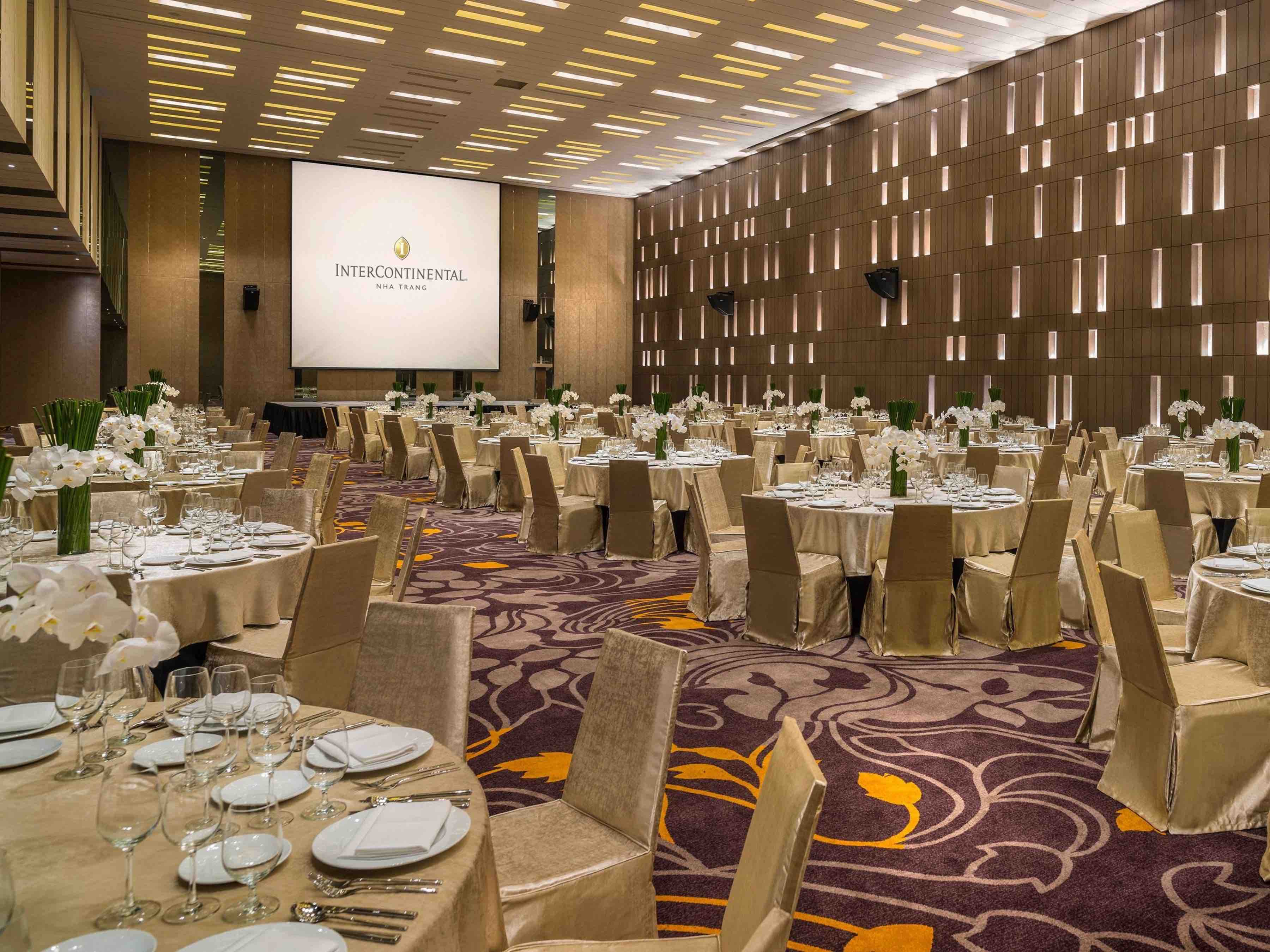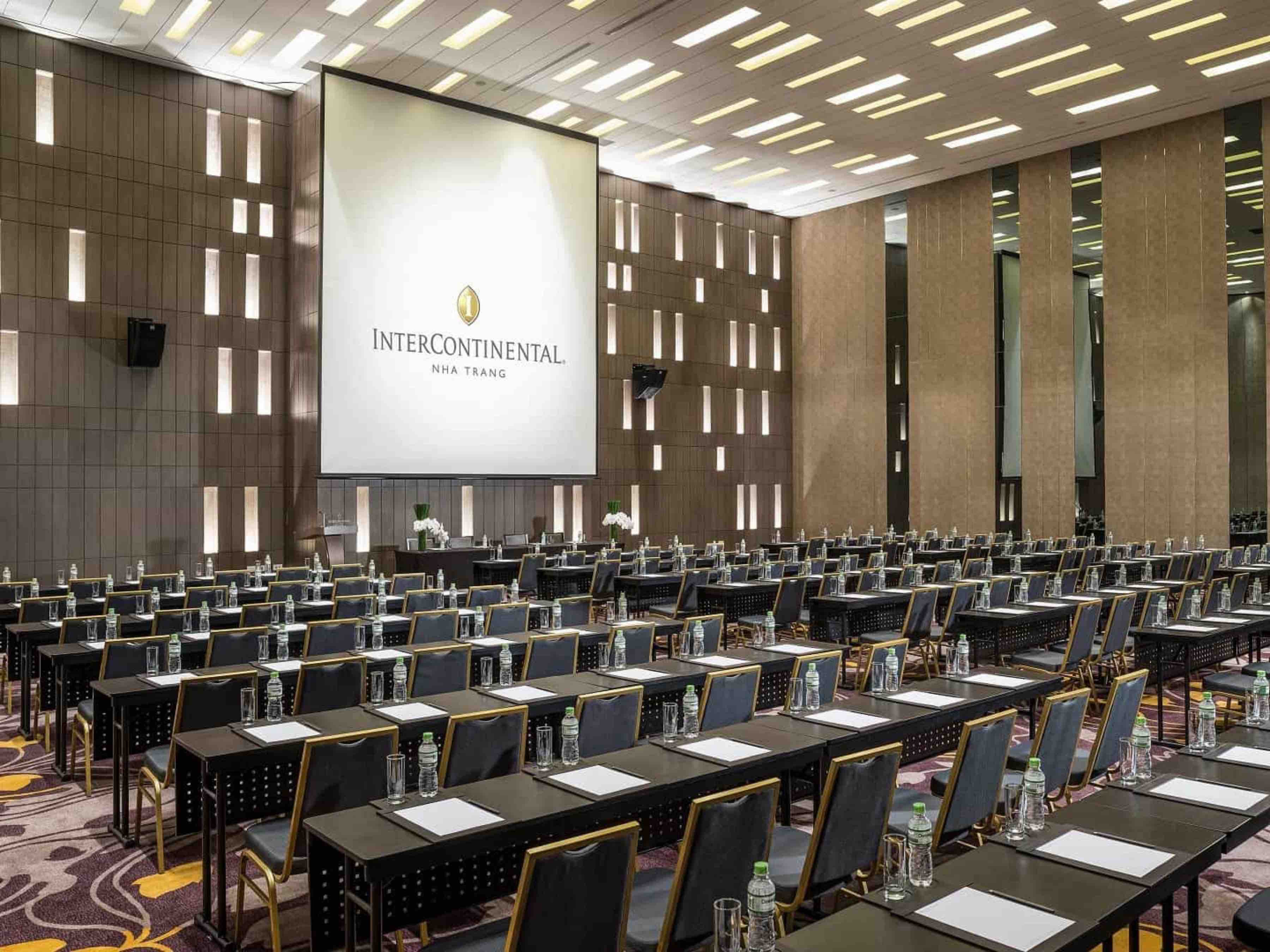 InterContinental Nha Trang còn tự hào khi mang đến không gian hội họp đẳng cấp quốc tế, với 5 phòng họp đầy đủ ánh sáng trời tự nhiên và sảnh tiệc Ballroom không cột lớn nhất Nha Trang. InterContinental Nha Trang hứa hẹn là một điểm dừng chân hoàn hảo để tổ chức các loại sự kiện từ hội nghị, hội họp kinh doanh cho đến các kế hoạch đám cưới trong mơ.