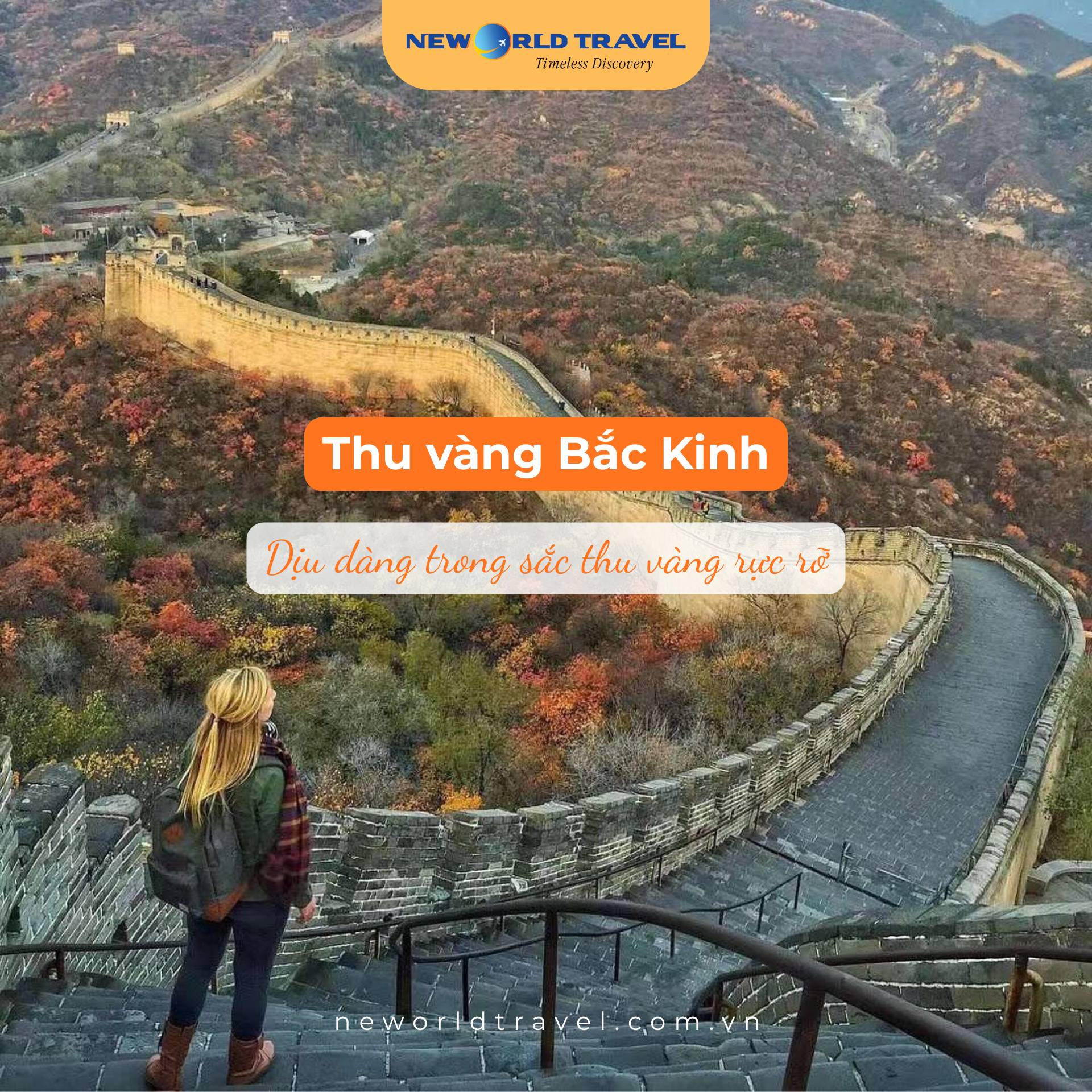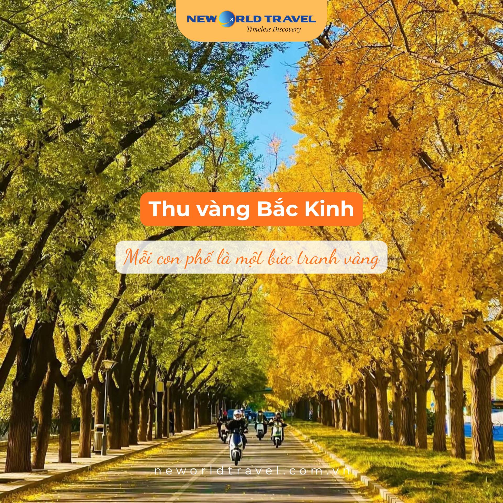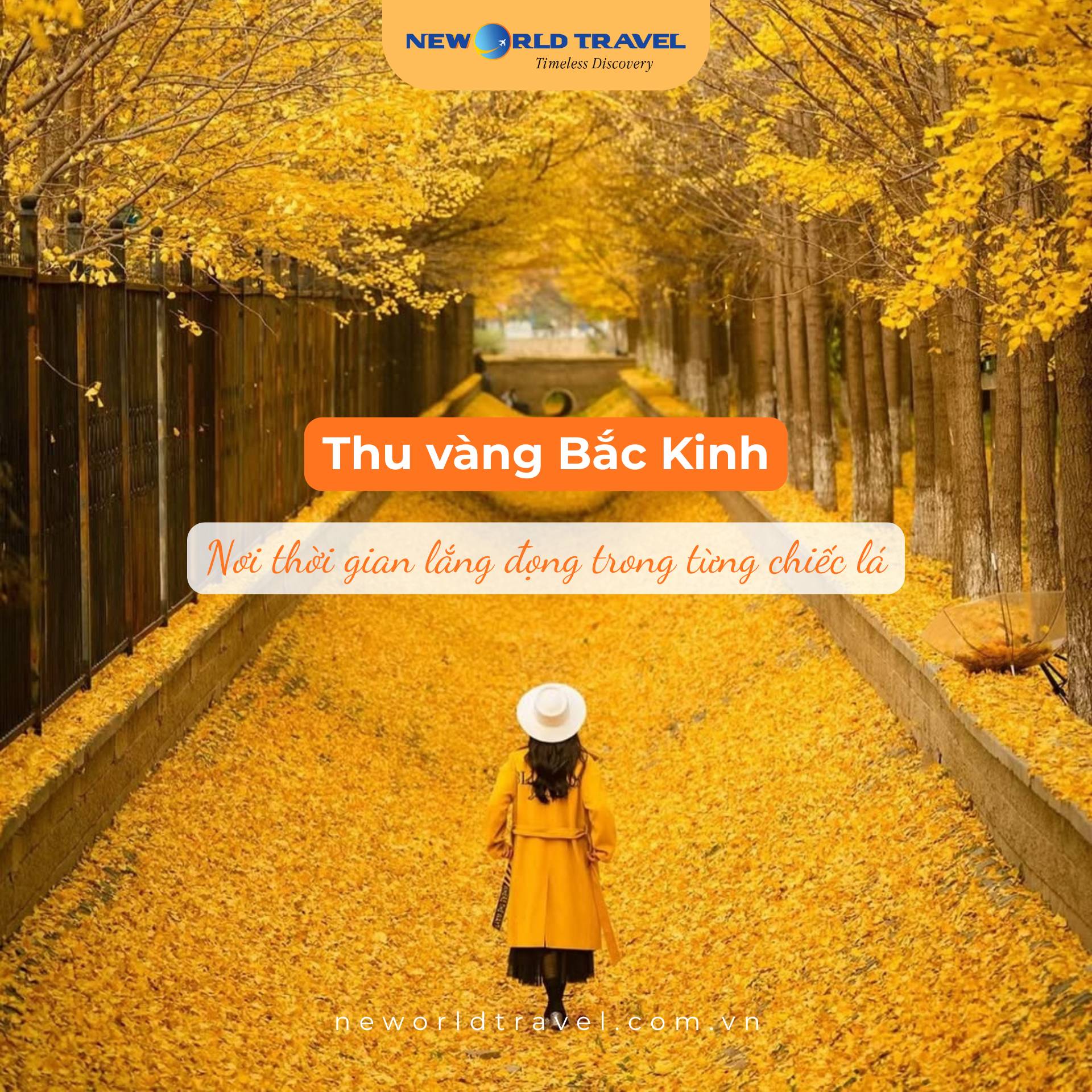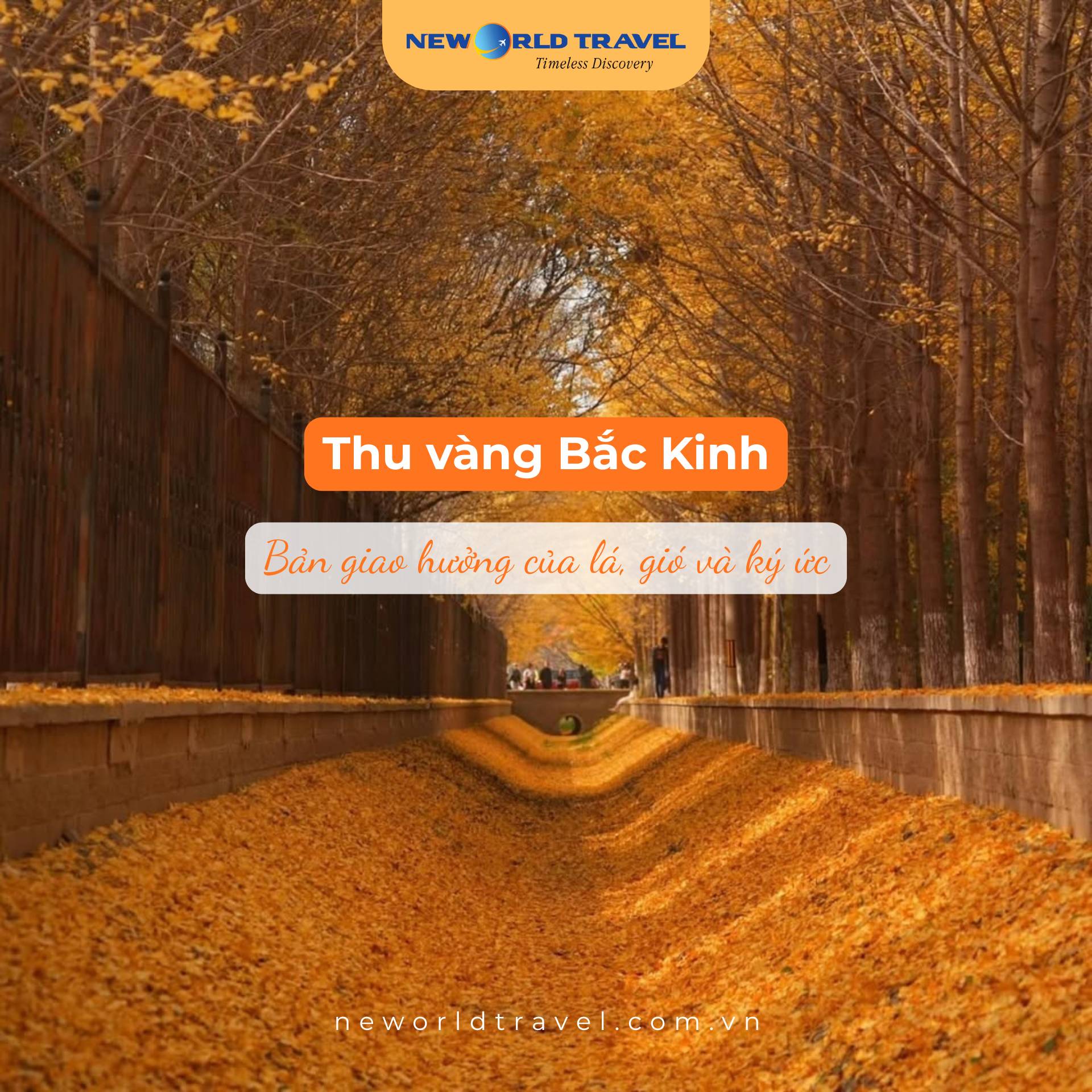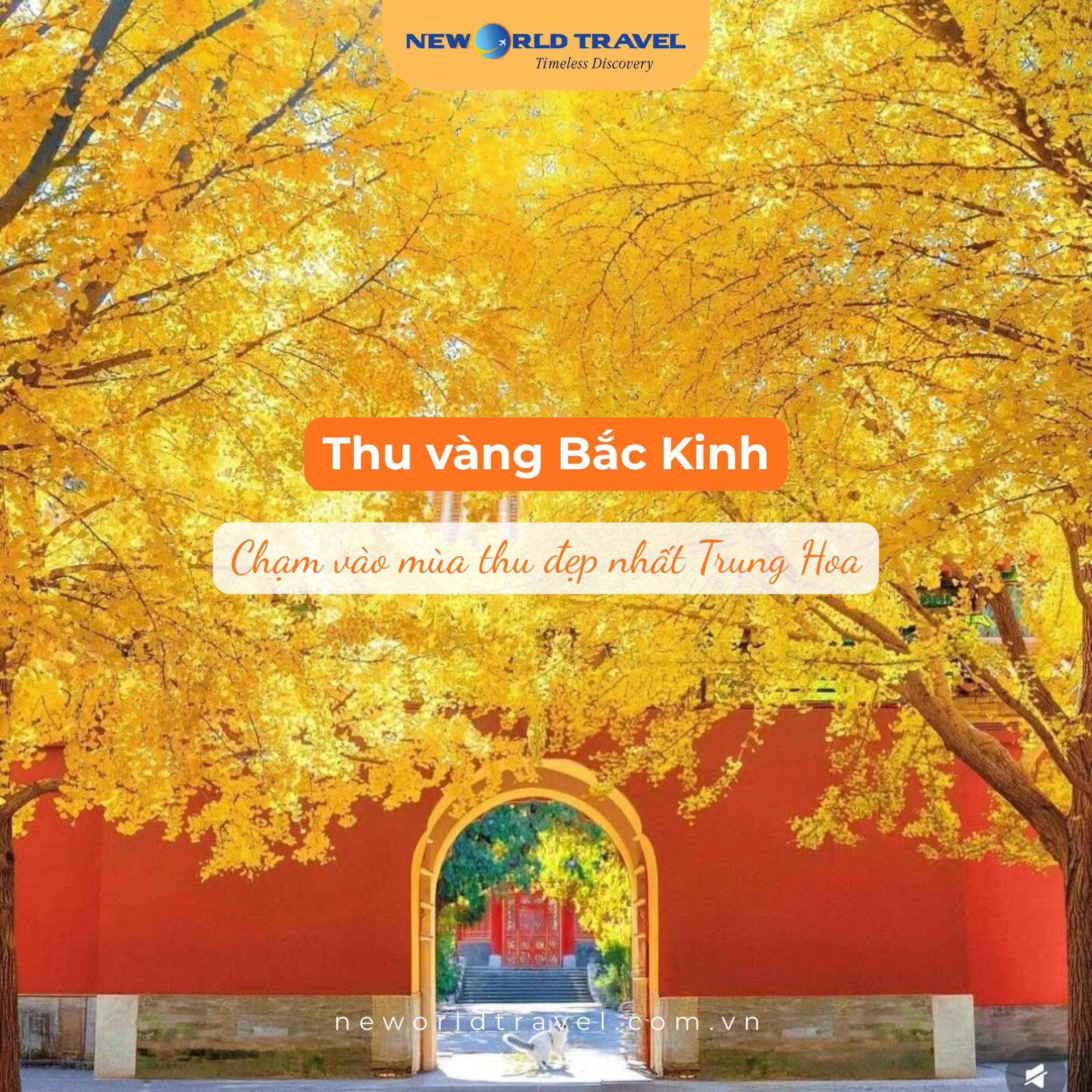 Khi Bắc Kinh khoác lên mình tấm áo vàng rực rỡ, từng con phố, góc phố đều hóa thành bức tranh cổ sống động. Hãy để bước chân bạn lạc giữa mùa thu vàng đẹp nhất châu Á - nơi thời gian như ngừng lại trong sắc lá cùng New World Travel...
