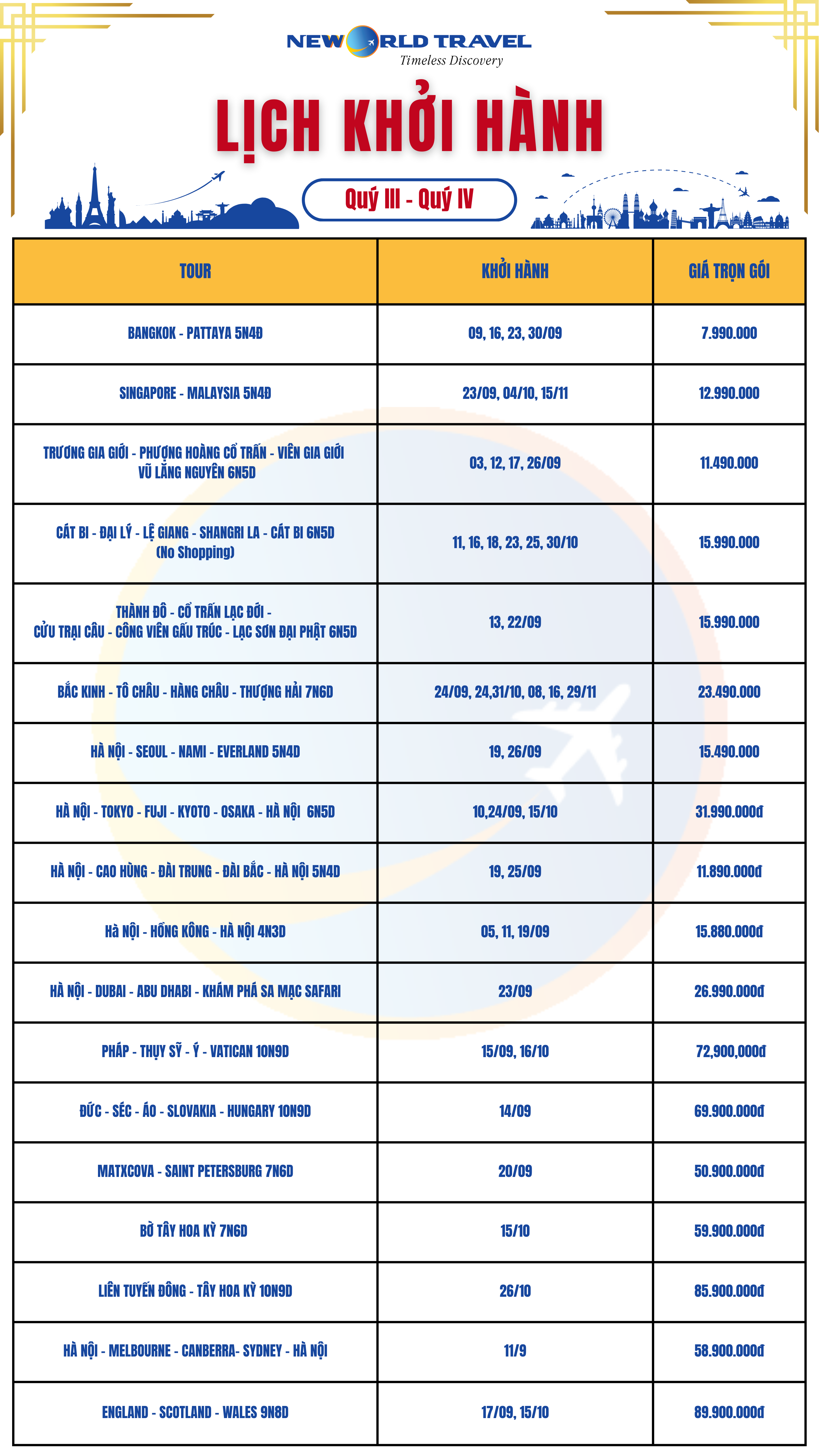 👉 Lịch khởi hành tour du lịch của Du lịch Tân Thế Giới - New World Travel đã sẵn sàng để bạn lựa chọn!