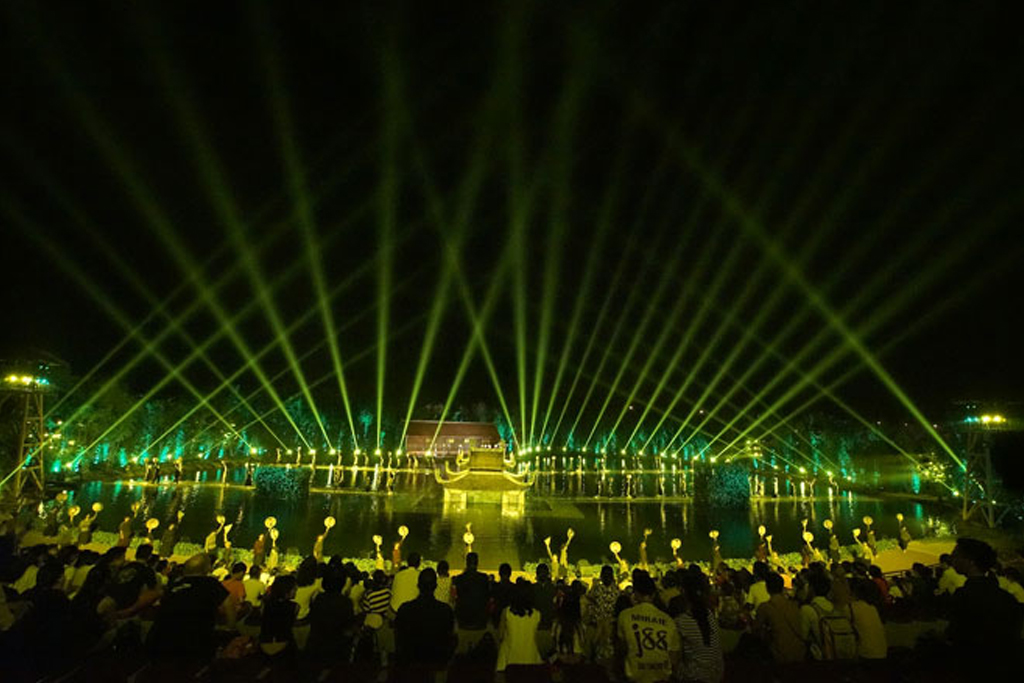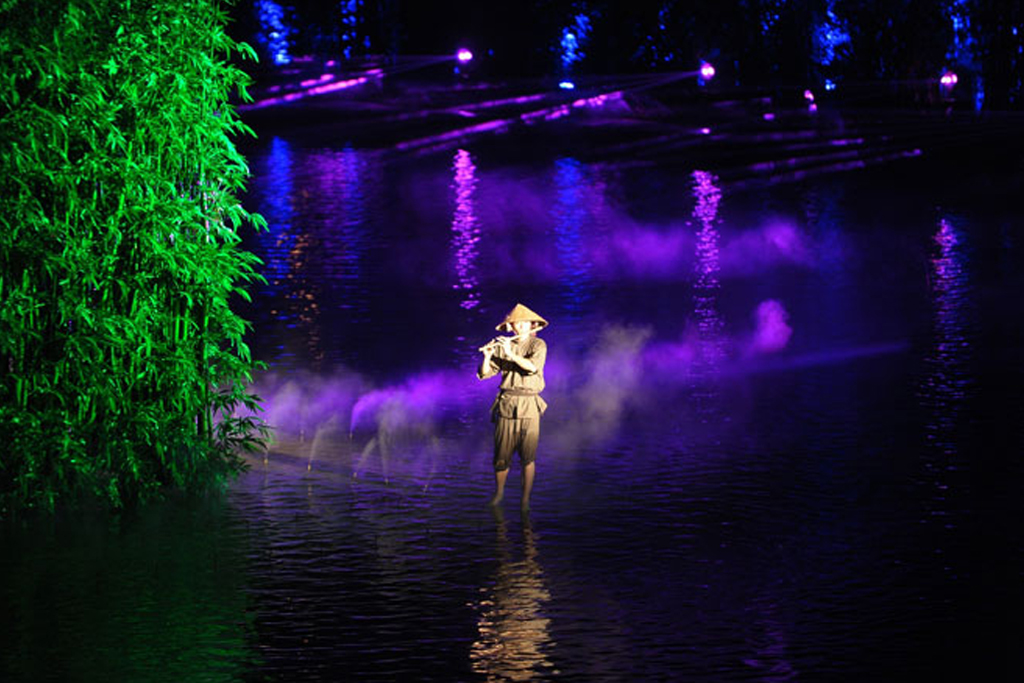 Những hiệu ứng "bom tấn" lần đầu tiên xuất hiện tại Việt Nam, đó là ngôi nhà đình nặng hàng tấn, dài 20m chạy ra sau rặng tre; là từ 10m sâu dưới đáy Long Trì, kỳ diệu hiện lên thuỷ đình nguyên bản nặng gần 10 tấn; là trên đỉnh núi Thầy cao trăm mét, hàng chục ngọn đèn như hào quang tỏa chiếu, tô điểm cho hình ảnh của Đức Thánh Tổ Từ Đạo Hạnh hiển linh; là hàng trăm ngọn đèn thắp sáng rực cả rừng tre xanh ngắt, nhuộm cả mặt hồ mênh mông.