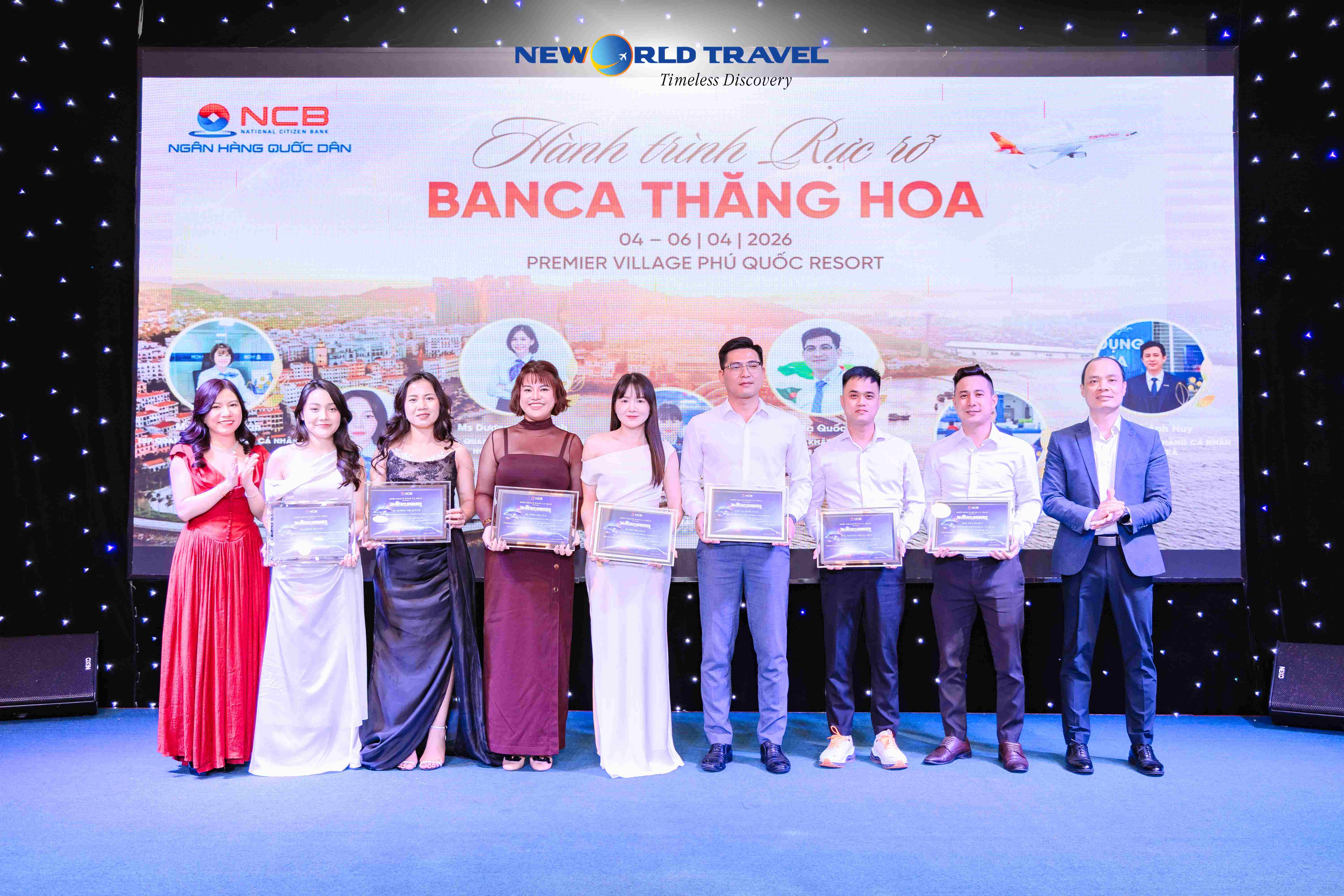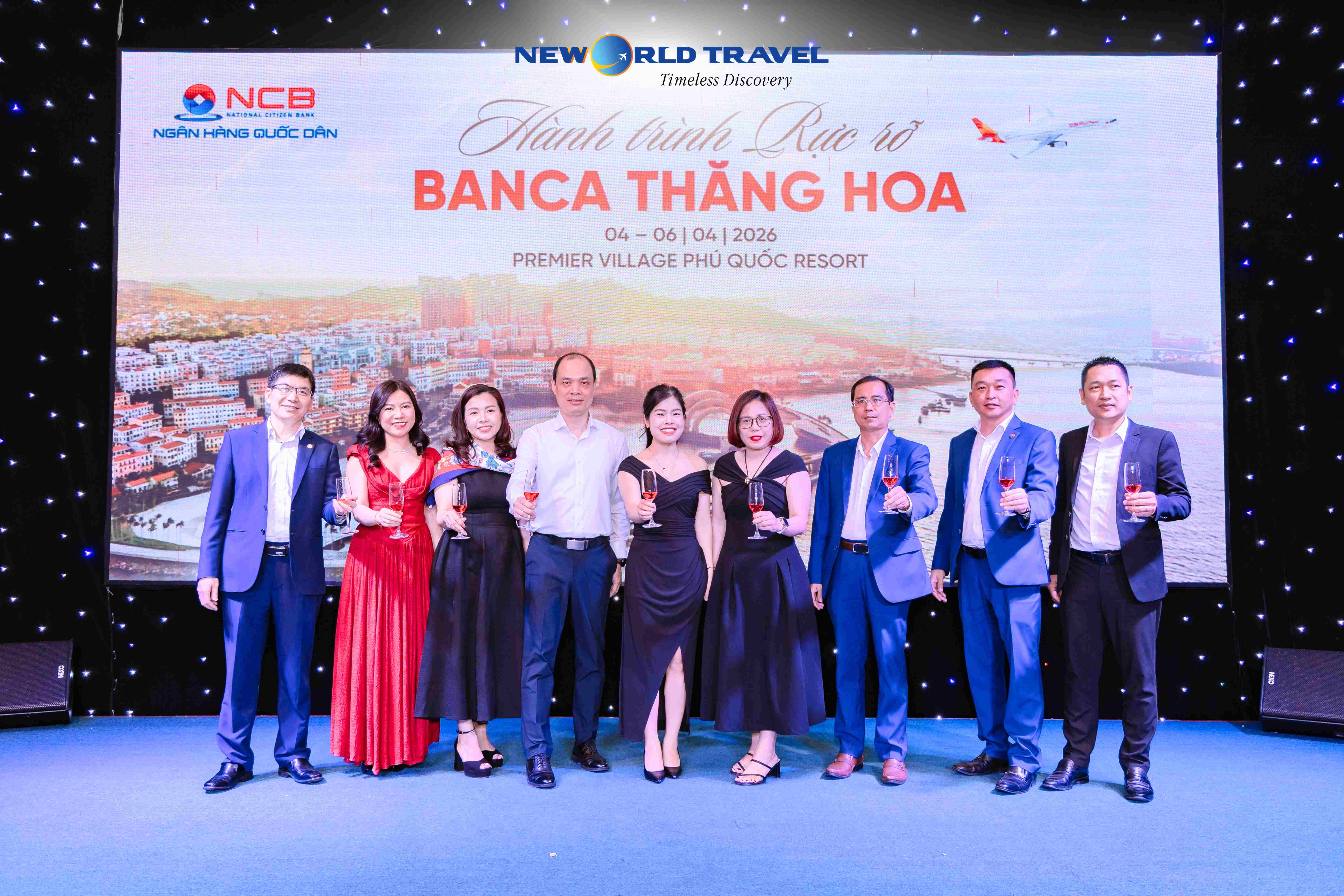 Đêm Gala Dinner Ngân hàng Quốc Dân - NCB tại Phú Quốc đã diễn ra trong không gian sang trọng, rực rỡ và đầy cảm xúc. New World Travel trân trọng cảm ơn Quý khách đã tin tưởng lựa chọn chúng tôi đồng hành trong chương trình ý nghĩa này.