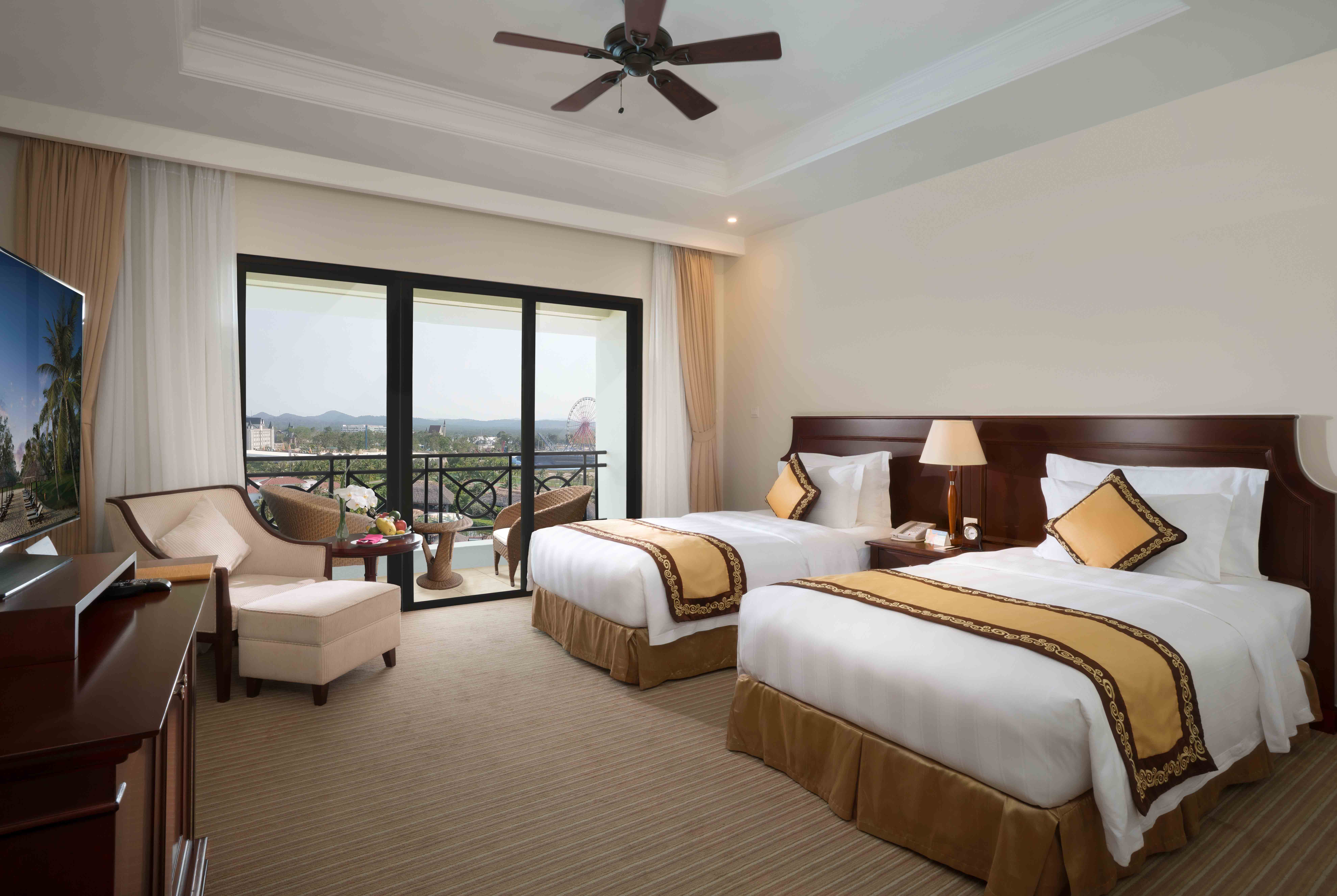 Với diện tích 46 m², Deluxe Twin là phòng khách sạn thiết kế hiện đại với giường đôi sang trọng, tích hợp đầy đủ tiện nghi cho kỳ lưu trú của bạn. Tầm nhìn hướng ra vườn, vị trí đắc địa ngay cạnh bãi Dài, phòng Deluxe Twin là lựa chọn lý tưởng dành cho các cặp đôi, gia đình nhỏ hay du khách đi công tác.